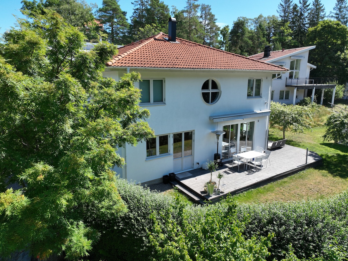 Modern mini villa built 2022 just by the ocean with fantastic view over the bay and archipelago. Beachfront with private jetty just below the house. Boat, kayaks, SUP´s and bicycles at your disposal. Totally 48 sqm split on lower floor with hall, master bedroom and bathroom, upper floor with living room, fully equipped kitchen and small bedroom with bunk bed. Sliding doors to balcony & terrace. Close to Tyresö castle & Tyresta National Park. Stockholm city only 21 km. Good public transportation.