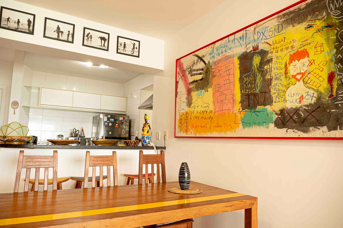 Perfect for beach lovers, with 300Mb fibre internet! This airy, laid-back beachfront apartment, on the second floor, has sensational ocean views and is just a few steps from Porto da Barra beach, one of the most beautiful and LIVELIEST beaches in Brazil! Located in a secure building in a neighborhood full of restaurants, bars, and local flavor, this is also the starting point for the Carnaval route. NOTE that we do charge separately the electricity bill for your stay (more details below).