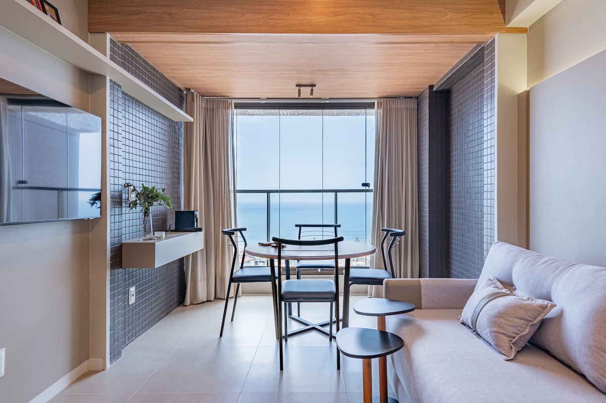Apartamento com Vista mar, finamente decorado e a poucos passos da Praia da Barra, do Farol da Barra e dos melhores Bares e Restaurantes da região. Smart TV, Wi-fi 500 Mbps, Ar condicionados na Sala e Quarto, Sofá-cama em linho, impermeabilizado e Cama Queen desenvolvida para rede Hoteleira, super confortável. Cozinha e Lavanderia completas com todos os utensílios necessários para sua estadia! Apartamento no circuito do Carnaval de Salvador (Barra-Ondina) Portaria 24h e Estacionamento Grátis.