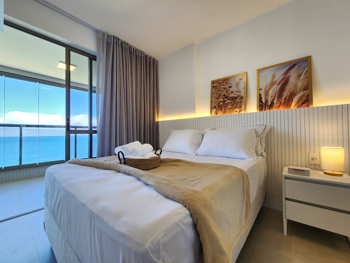 Apt na Barra (bairro turistico) de Salvador, vista mar panorâmica, paralelo ao circuito do Carnaval. 2 min de caminhada ao Farol da Barra. O quarto e sala acomoda até 04 pessoas (quarto cama queen e sala com sofá-cama). Ar condicionado e smart TV em todos os cômodos. Cozinha completa com fogão, forno, microondas, geladeira, filtro de água, cafeteira Nespresso e todos os utensílios Automatizado por Alexa 1 vaga de garagem, rooftop com piscina e academia Lavanderia no térreo PROIBIDO FUMAR
