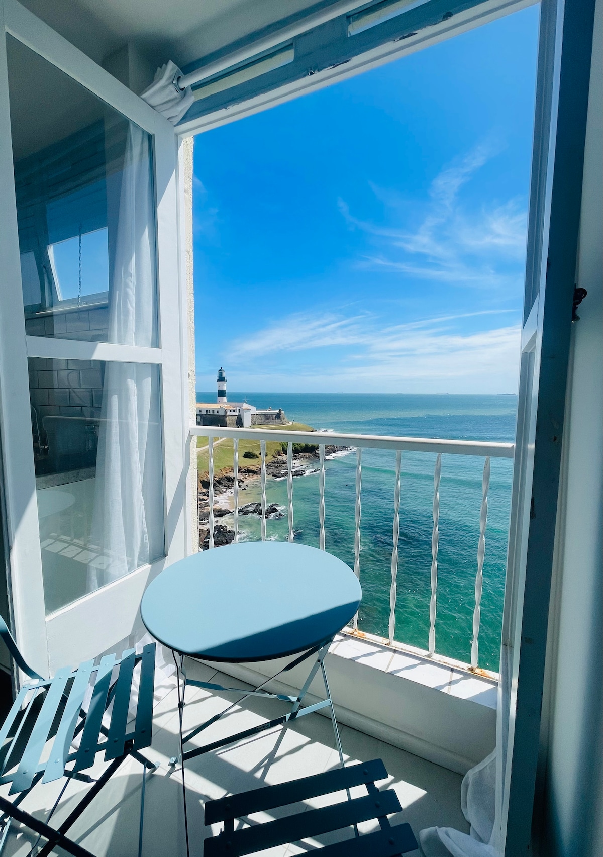 Enjoy Salvador from this beautiful and renovated apartment on the Barra waterfront, with an amazing view of the iconic Farol da Barra! Perfect for couples, small families, or group of friends. 1 bedroom with A/C and a double bed + 2 single beds in the living. Comfortable bathroom and fully equipped kitchen. Ideal location for the beach, sunset, and events like Carnival. Cozy, practical, and scenic. Close to bars, markets, and transport for a worry-free stay.