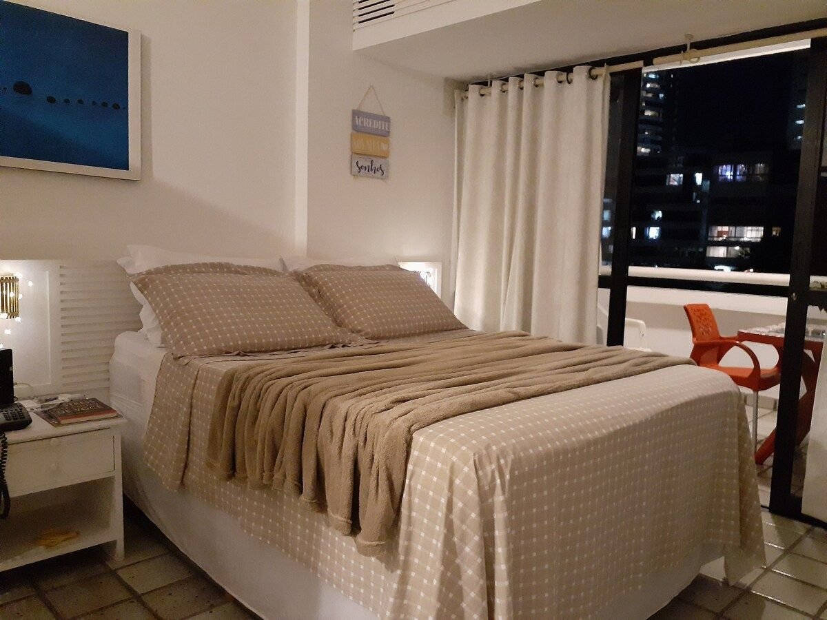 Stúdio completo com varanda, portaria 24h, piscina (não disponivel em janeiro e fevereiro), praia, ciclovia e calçadão. Academia ( preços justos) e o famoso restaurante Alfredo no prédio, assim como salão de beleza e studio de pilates. Padaria e lavanderia automática na vizinhança. Bem perto do Camarote Salvador e dos melhores de Ondina. Vista avenida para o desfile. Próximo a UFBA e Clinicas Médicas. Camareira em dias úteis, Wi-fi 250mb. Garagem. Roupas de cama e banho fornecidas.