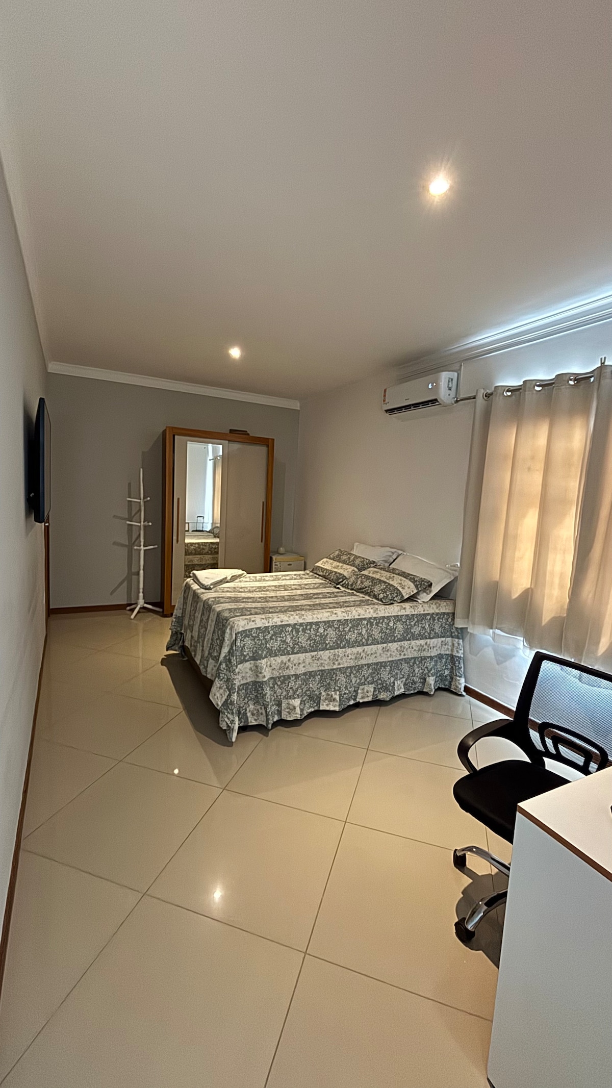 Quarto aconchegante, com banheiro privativo e ar condicionado, a 500m da praia do Porto da Barra, com acesso a garagem e portaria 24h. O melhor da Barra te espera, venha se hospedar conosco, o Cantinho da Barra é uma suíte em nosso AP Supermercado (literalmente ao lado), bancos, lojas, bares, restaurantes e transporte público próximos ao local. Conforto e localização privilegiada em um só lugar.