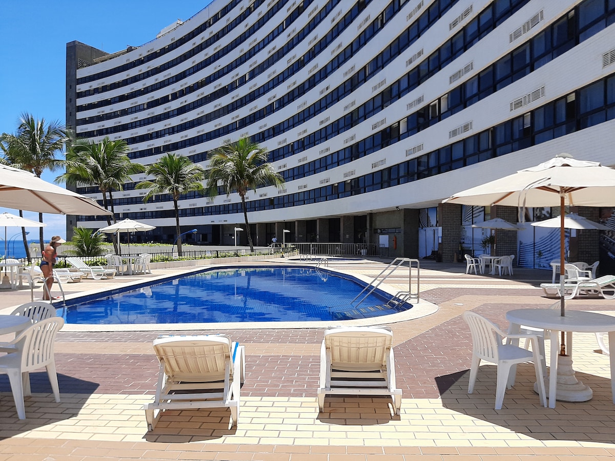 Comfortable and modern Flat on the beach, fully renovated and furnished, privileged location, close to bars, restaurants and all the bustling nightlife of Barra. The Flat has a swimming pool with the best view of Farol da Barra beach, in addition to a daily cleaning and housekeeping service, silent split air conditioning, 50” Smart TV and Wi-Fi. Situated in front of the delightful natural pools of Praia da Barra (just cross the street) and with a beautiful shore to stroll around.