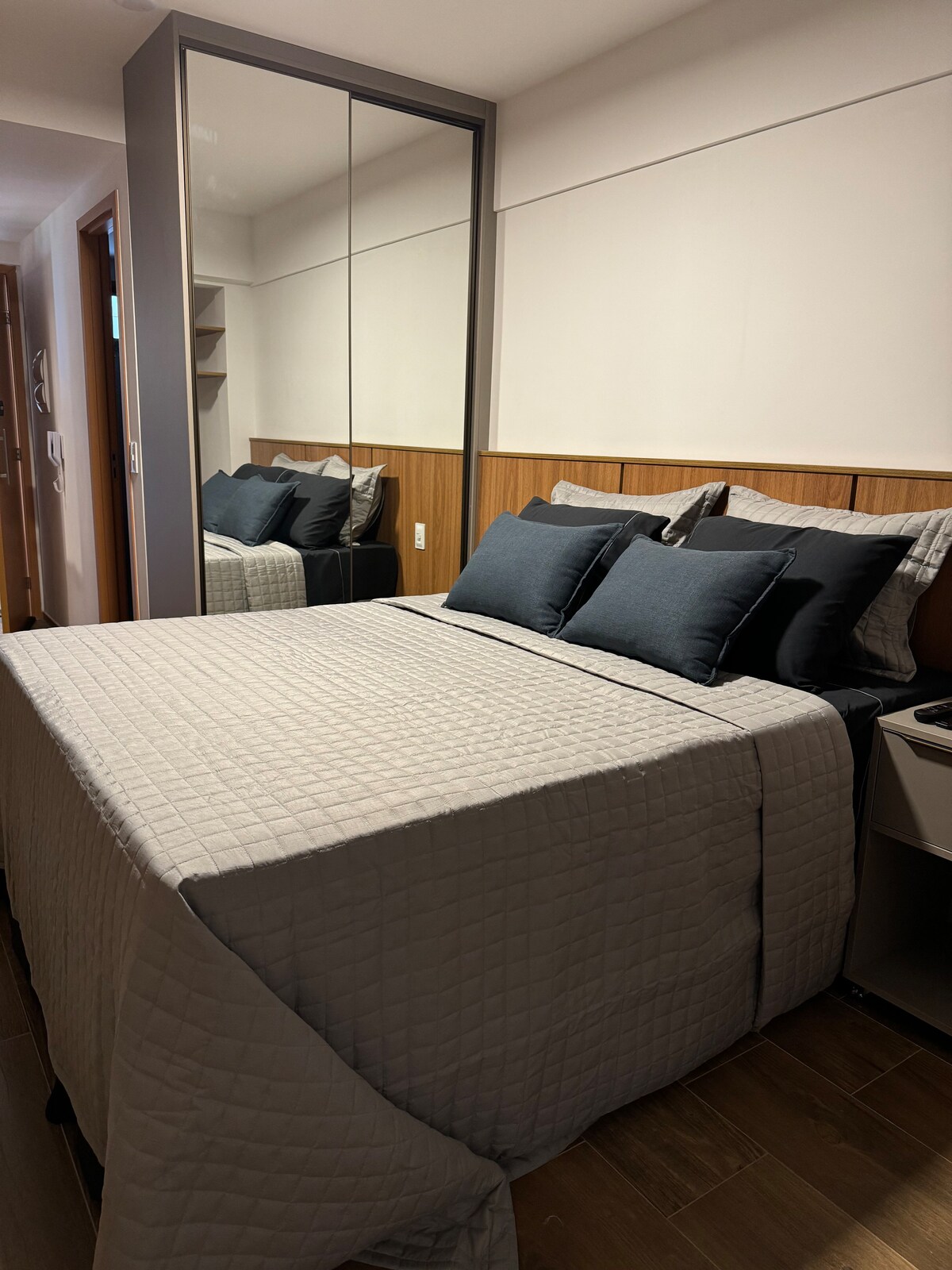 Charme e conforto - no Caminho das Árvores Um Studio completo, com serviços de hotelaria (recepção, estacionamento, room service, lavanderia, governança, academia). O apartamento conta com 32 m2, cama de casal, e um sofá cama, ar-condicionado, smart tv LED 42", cofre, bancada para trabalhar, ferro de passar, mesa para refeições, cozinha com cooktop, microondas, geladeira, cafeteira dolce gusto, sanduicheira, pipoqueira e utensílios. Banheiro com chuveiro elétrico e secador de cabelo.