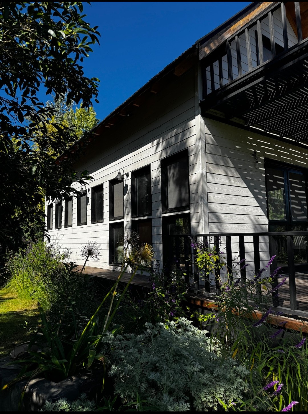 Casa Moderna con Toque Vintage en Salvador María, Lobos. Ubicada en el exclusivo barrio Los Fresnos, rodeada de pinos y casuarinas. A 15 min del centro de Lobos y del Aeroclub Fortín Lobos, 5 min de la Laguna (ideal para deportes acuáticos) y 3 min del Campo de Polo La Araucaria. La casa, tiene pileta con cascada, parrilla móvil, terraza y salamandra para noches frías de invierno. Fácil acceso, incluso en días de lluvia. ¡Ideal para disfrutar la naturaleza y relajarse todo el año.