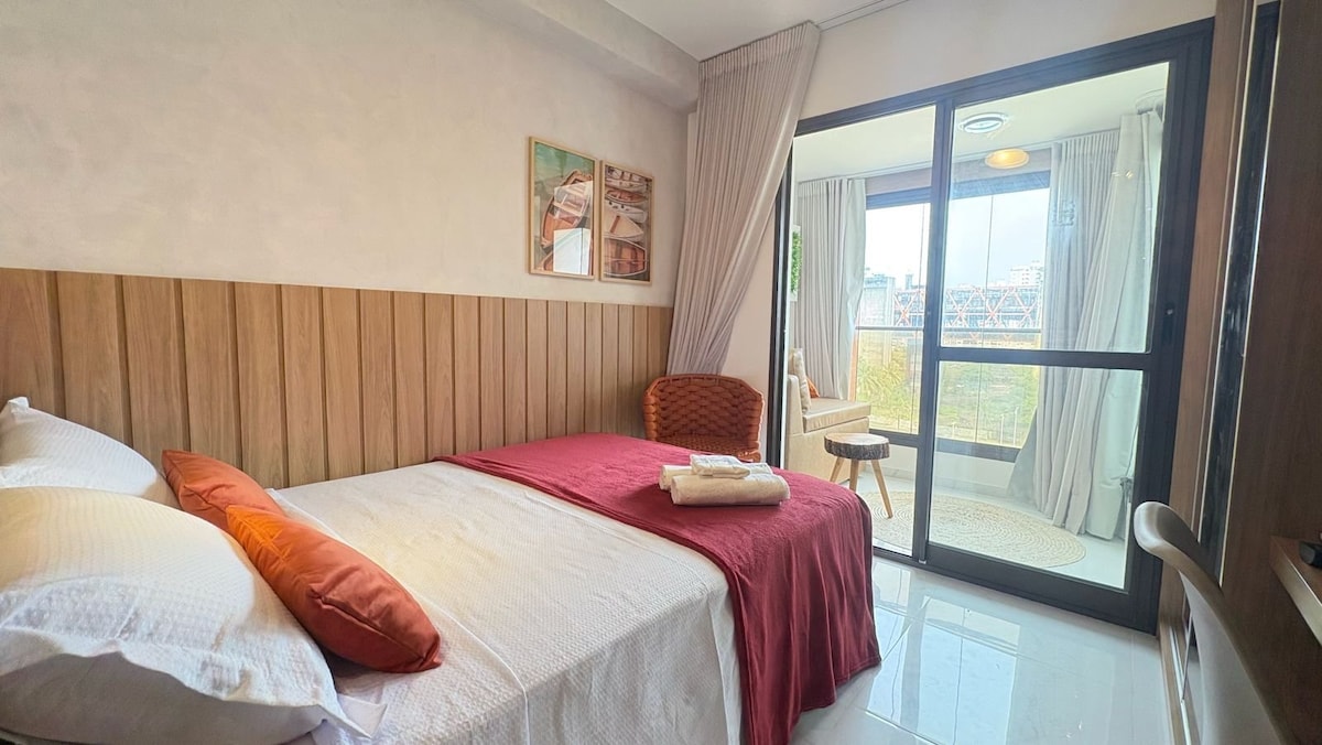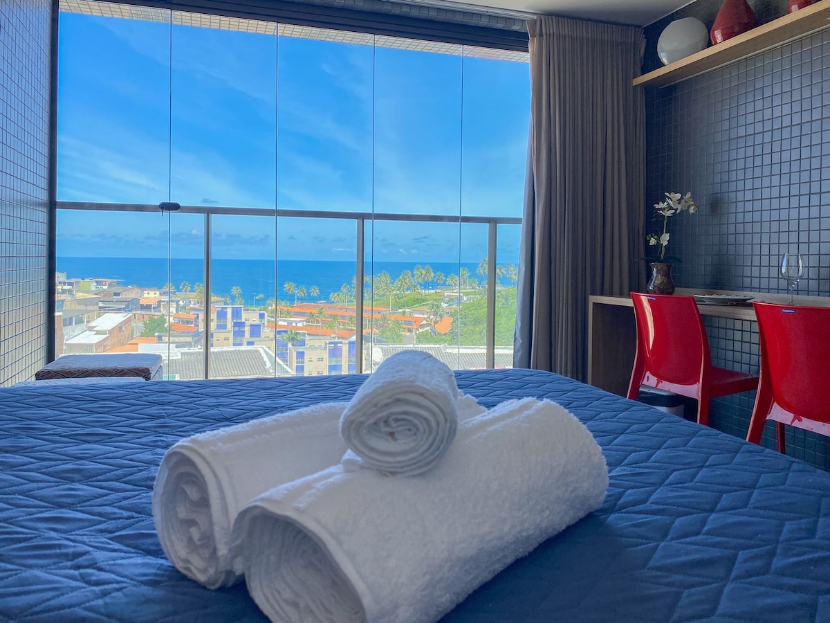 Modern and cozy studio in the heart of Rio Vermelho, featuring an amazing sea view and an east-facing balcony. Fully air-conditioned, it includes a complete kitchen, 4K Smart TV, fast Wi-Fi, and a work desk. The building offers a rooftop pool, gym, coworking space, and 24-hour security with biometric access. Located just 700 meters from Buracão Beach, in a quiet area close to bars and restaurants. Perfect for those seeking comfort, convenience, and a stylish stay in Salvador.
