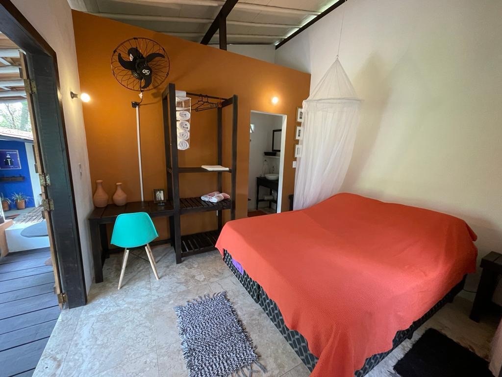 Este lugar único tem um estilo próprio e rústico. Banheiro e cozinha privativa com cooktop, frigobar, filtro de água e utensílios básicos para você preparar suas refeições. Quarto com cama de casal no mezanino. Deck de madeira com vista para a mata, jacuzzi privativa para você relaxar e desfrutar com liberdade. É exclusiva para casais. Não aceitamos crianças. Ideal para pessoas que gostam de contato com a natureza. A Cabana Rubi está localizada a 300 metros da praia e 200 metros do rio.