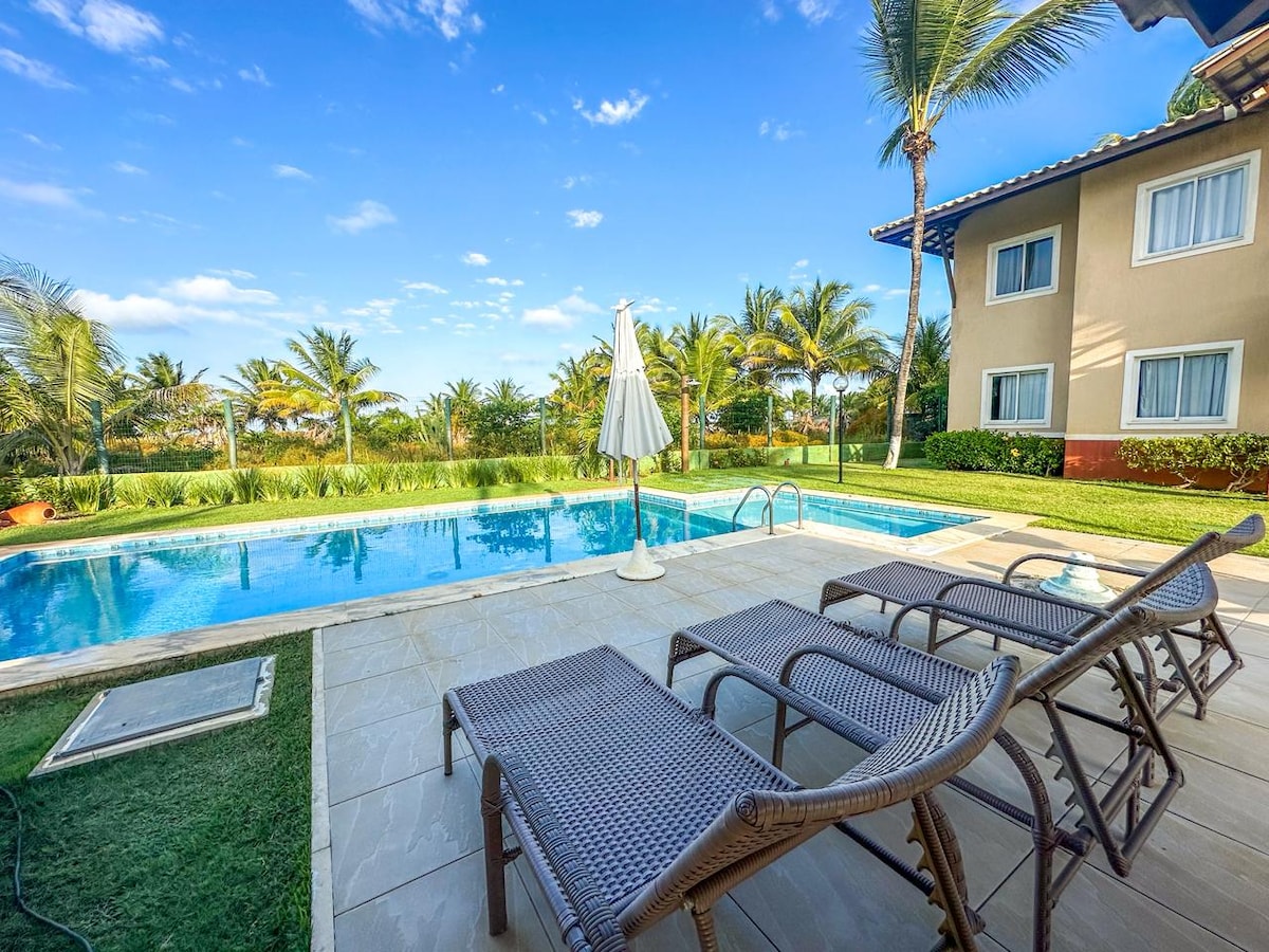 The apartment is located in Village Lagoa Ville, right on the beach. The condominium has a swimming pool, barbecue area, and leisure area. It has two suites, a living room, an equipped kitchen, a balcony, and a small terrace on the 2nd floor. Each bedroom has a double bed, and one of them has two extra mattresses. It has 24-hour concierge service and local security. Next to it is the Itacimirim Lagoon, a calm and secluded environment. It is 5 km from Praia do Forte. Wi-Fi, Netflix, and books.