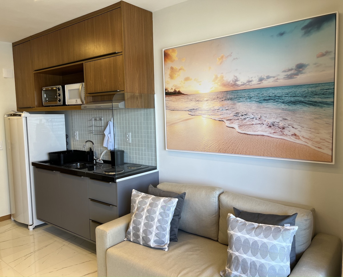 ✔️ SMART Mini Studio: voice control for TV, air conditioning, and lights. ✔️ 24h check-in and concierge, pool, gym. ✔️ 140 m from a quiet beach. ✔️ Equipped kitchen. ✔️Parking is accessible, subject to availability. ✔️ Close to supermarkets, shops, restaurants. ✔️ Accessible transportation. ✔️ Fast Internet + Smart TV. ✔️ Fully air-conditioned environment. ✔️ Quiet location but close to the bohemian Rio Vermelho. ✔️ Double Bed with Pillowtop