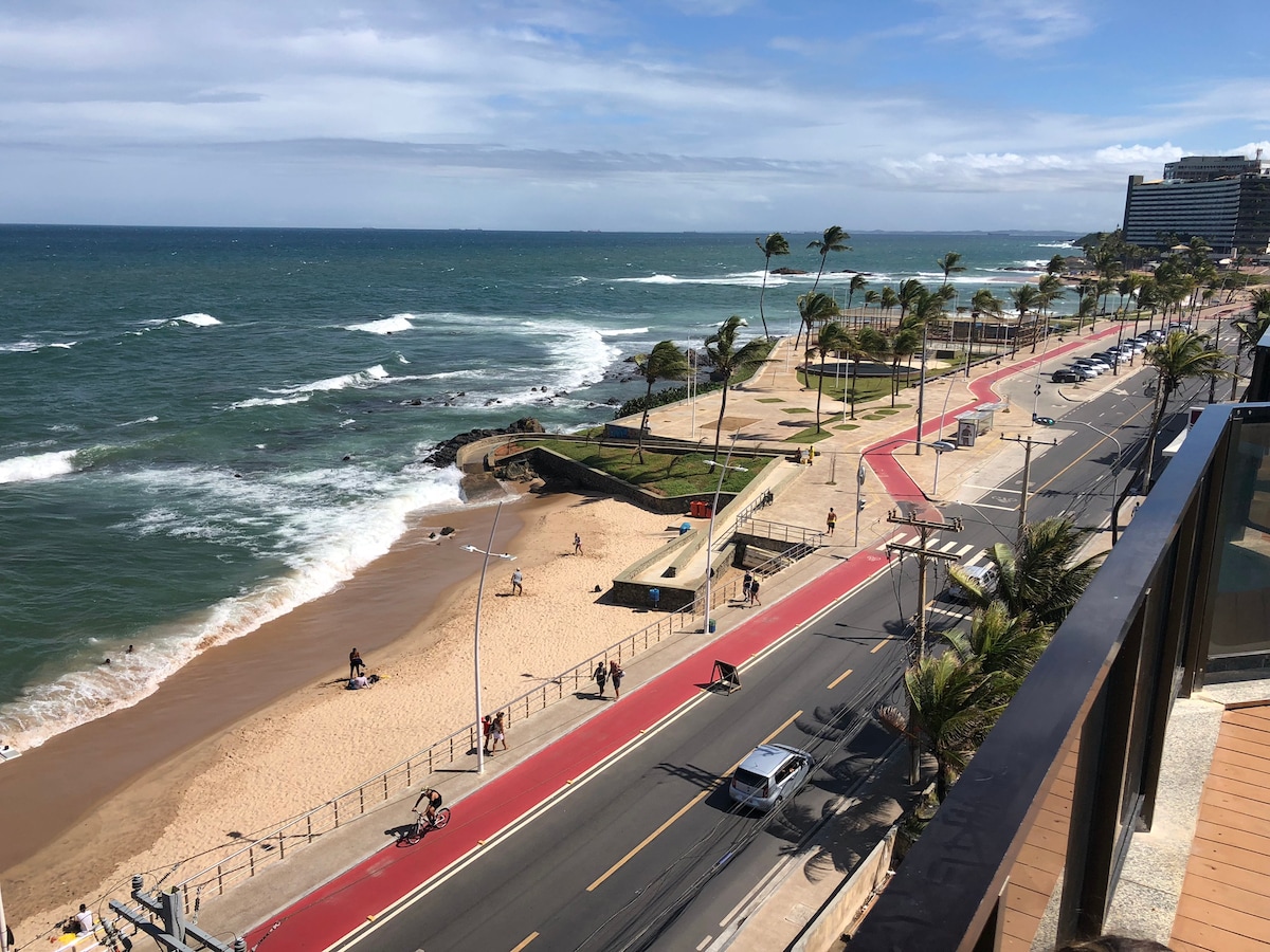 Flat novinho, recém reformado, em frente a praia, com vista lateral para o mar: da varanda é possível apreciar a praia, a avenida e o pôr do sol da Barra. Localizado no melhor ponto da Barra, perto de restaurantes, bares, mercados, farmácias e do Shopping Barra, além de fácil acesso aos principais pontos turísticos de Salvador. Dispõe de ar-condicionado split, ventilador de teto, TV e uma cozinha equipada (sem fogão). O Flat dispõe de camareira para limpeza diária e piscina de uso comum.