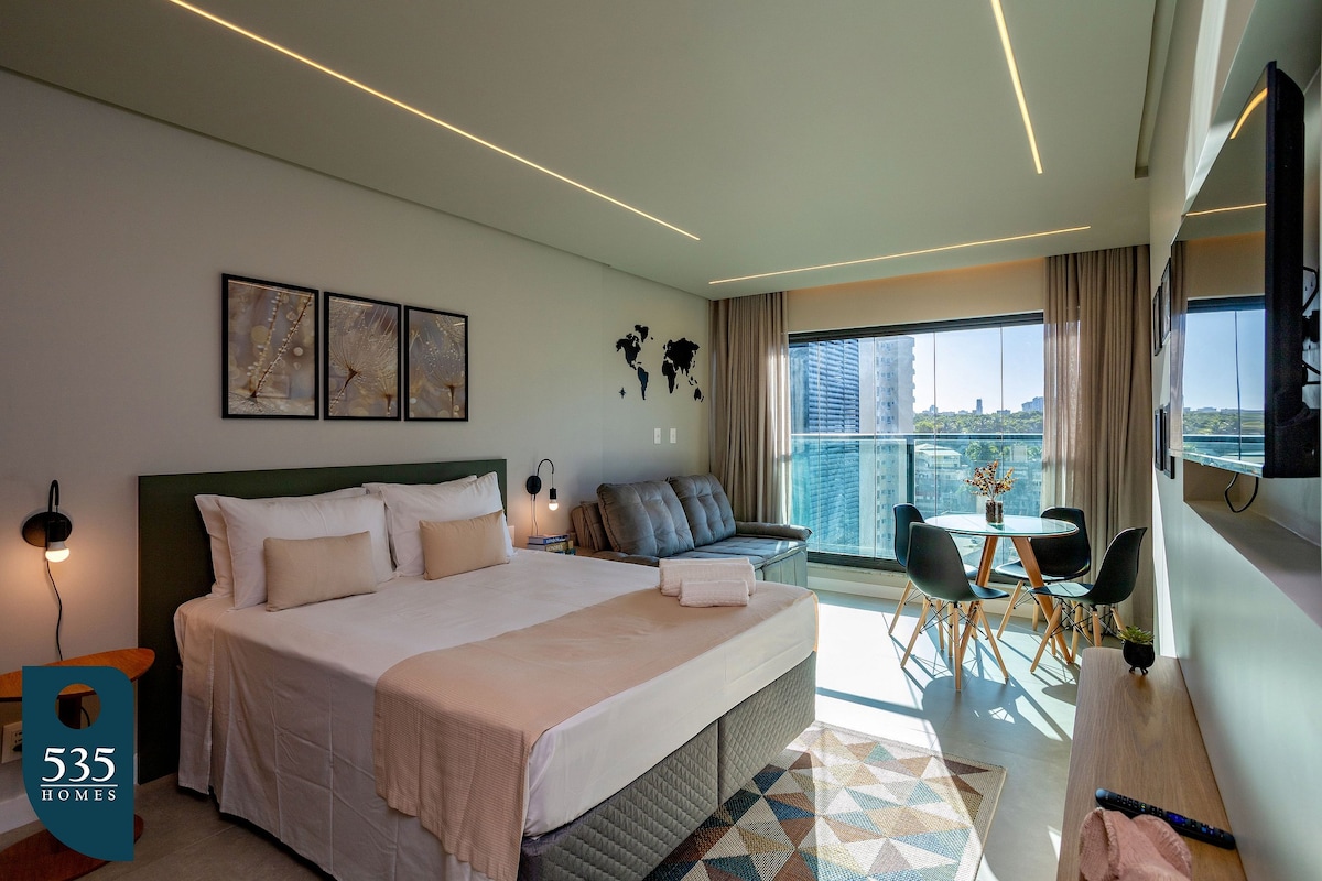 Estúdio no Caminho das Árvores, com tecnologia e conforto. Perto do Shopping da Bahia, metrô e rodoviária, ao lado da Av. Tancredo Neves – centro empresarial de Salvador. Ideal para até 3 hóspedes, com cama de casal + auxiliar retrátil, ar-condicionado, Smart TV 42" com assinatura Netflix, Wi-Fi rápido e Alexa para controlar luzes, TV e ar por comando de voz. Cozinha equipada e enxoval completo. O prédio oferece piscina rooftop, academia, coworking, lavanderia, mini-mercado e portaria 24h.