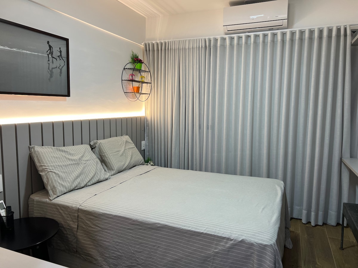 ✔️ SMART Mini Studio: voice control for TV, air conditioning, and lights. ✔️ 24h check-in and concierge, pool, gym. ✔️ 140 m from a quiet beach. ✔️ Equipped kitchen. ✔️Parking is accessible, subject to availability. ✔️ Close to supermarkets, shops, restaurants. ✔️ Accessible transportation. ✔️ Fast Internet + Smart TV. ✔️ Fully air-conditioned environment. ✔️ Quiet location but close to the bohemian Rio Vermelho. ✔️ Double Bed with Pillowtop