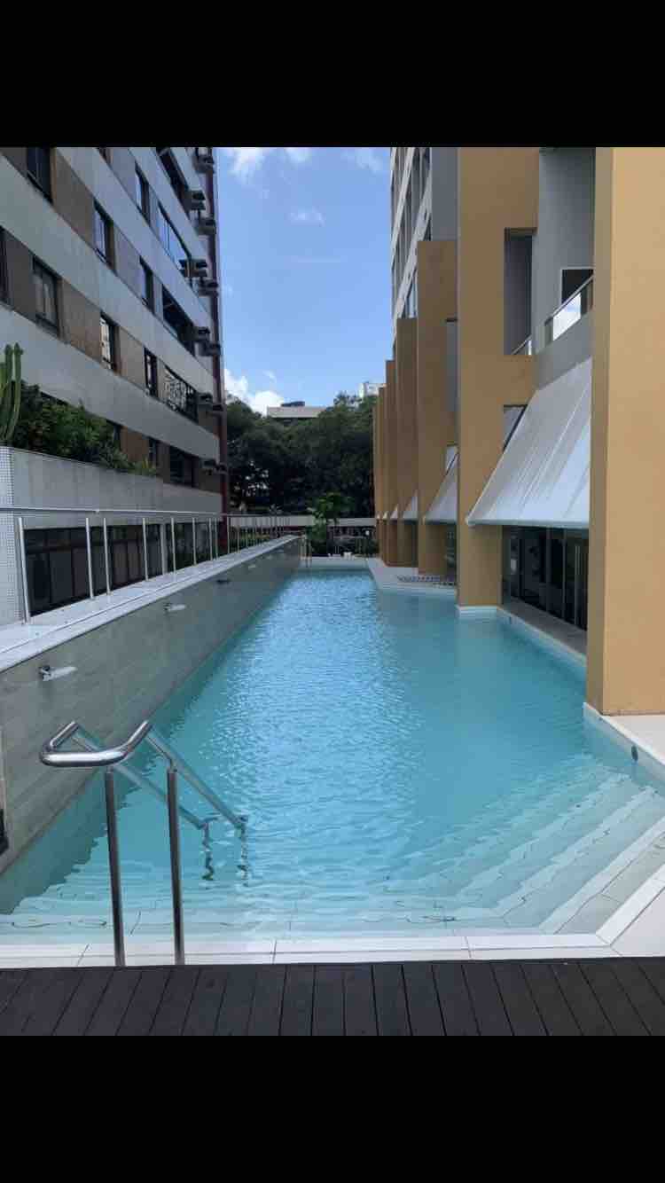 LOFT 100% decorado e equipado com ar-condicionado, chuveiro quente, wifi, smart tv , ventilador, toalhas, roupa de cama, máquina de lavar, microondas, talheres, pratos, fogão, geladeira sauna a vapor, piscina, academia, biblioteca, espaço zen, garagem, segurança, 3 elevadores. Bairro nobre, todos os serviços disponíveis: farmácias, bancos, Walmart, padarias, praças, teatros, próximo do centro histórico e da Bahia de Todos os Santos, 2ª maior Bahia navegável do mundo.