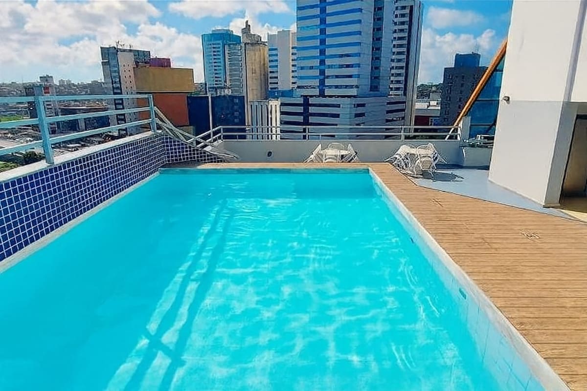 ✔️ Piscina e Sauna: vista pra praia do Rio Vermelho ✔️ WI FI de ALTA VELOCIDADE ✔️ Cozinha Equipada : geladeira cooktop, microndas, liquidificador, sanduicheira, cafeteira, pratos, panelas, talheres, tijelas, copos, taças. ✔️ Estacionamento Gratuito ✔️ Portaria 24 horas ✔️ Camareira ✔️ Cama queen e ar-condicionado ✔️ TV Smart 43" Aberta/Streaming ✔️ Água quente energia solar ✔️ Amplo: 51m²
