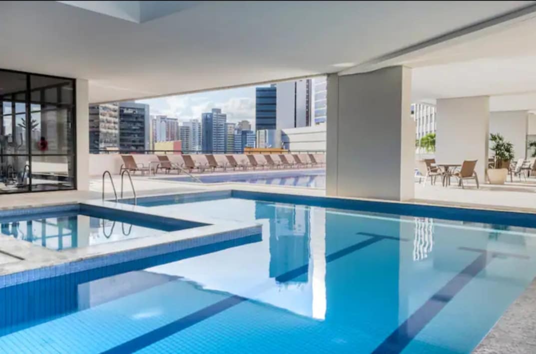 Apart hotel de alto padrão, neste lugar tranquilo e bem-localizado, com academia, piscina coberta e aquecida. piscina com água fria. e piscina coberta aquecida , pista de cooper. restaurante no mesmo piso da recepção. garagem coberta. É bem confortável Com Shopping Center no em torno, hospitais e não distante de bons restaurante e orla marítima .