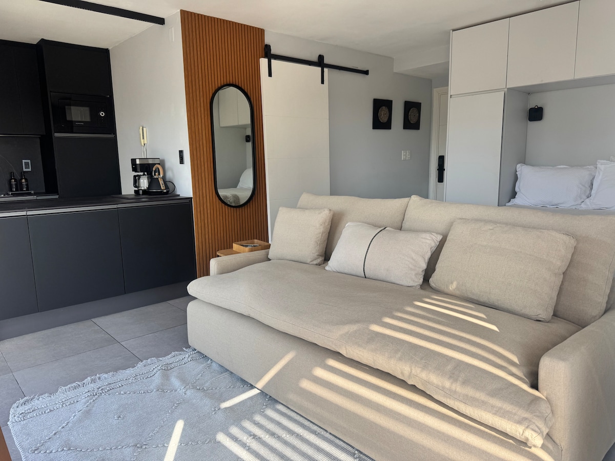 Modern 1-bedroom apartment in Parque Rodó. Bright and quiet, with large double-glass windows. Fully equipped kitchen with fridge, oven, microwave, utensils and tableware. Open living-dining area with 43" Smart TV and a home office space with Wi-Fi. Bedroom with queen bed and balcony access, plus a full bathroom. Excellent location: steps from Parque Rodó and the Rambla, surrounded by cafés, shops, and public transport at the door.