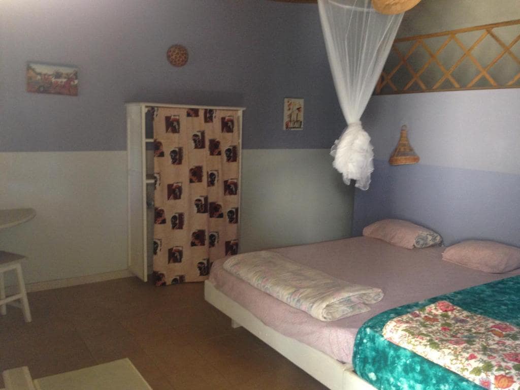 Profitez de cette chambre qui reçoit 2 personnes.. 2 nuits minimum . Chambre indépendante moderne où vous serez les seuls hôtes . Les propriétaires habitent sur place dans la partie principale avec Falco notre très beau berger allemand . Endroit non fumeur. Pas de possibilité de cuisiner mais vous avez de très bons restaurants au alentour. Possibilité de prendre un petit déjeuner sur place à confirmer et régler à votre arrivée 3500 CFA / personne .