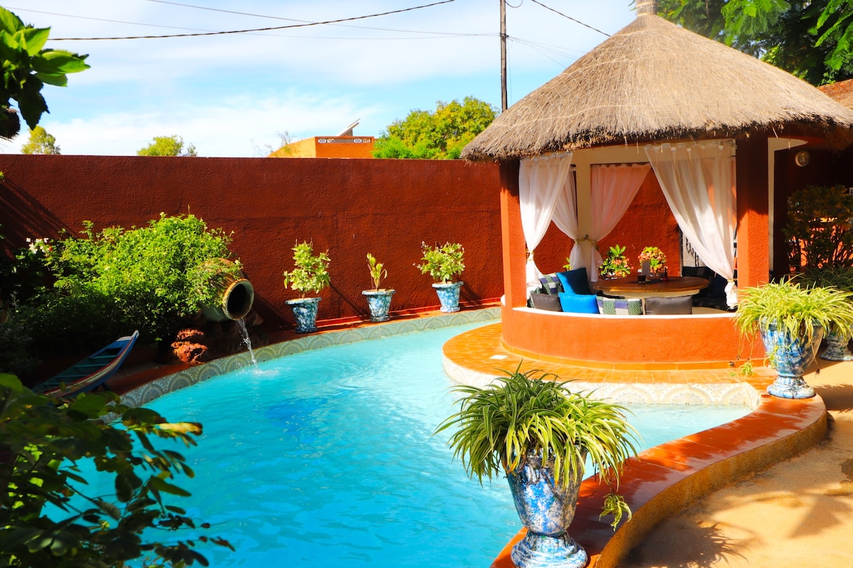 MAISEVA is our independent villa with private pool and shaded garden comprising: 6 bedrooms each with private bathroom with walk-in shower and toilet, mosquito net and fan. Open kitchen fully equipped Wifi Breakfast included Security Guard at home We provide you sheets and towels A washing machine is at your disposal We do not have a water heater