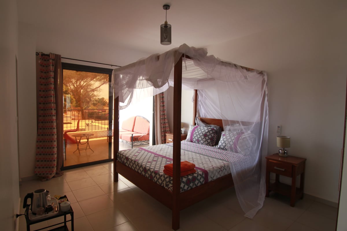 MAISEVA is our independent villa with private pool and shaded garden comprising: 6 bedrooms each with private bathroom with walk-in shower and toilet, mosquito net and fan. Open kitchen fully equipped Wifi Breakfast included Security Guard at home We provide you sheets and towels A washing machine is at your disposal We do not have a water heater