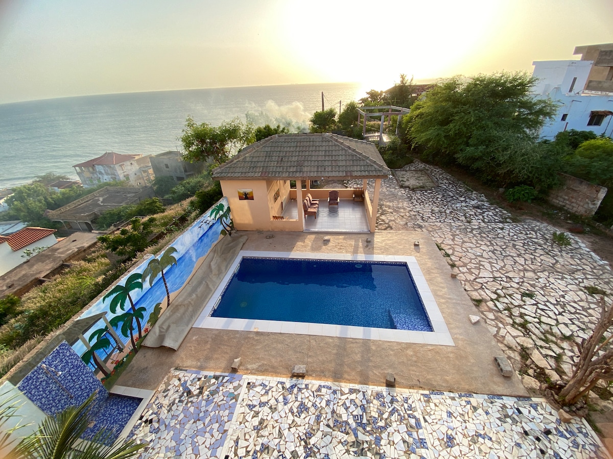 Détendez-vous dans cette villa unique et paisible. La maison est familiale , équipée et aménagée avec goût. Une piscine naturelle, un jardin arboré vous pouvez y faire un feu de camp au coucher du soleil. Spot de kit surf ! La lagune se trouve a 15 min à pied , pour les amateurs de surf et de fruits de mer. Adama le gardien, fatou la femme de ménage et Oumy la cuisinière seront là pour s’occuper de vous !
