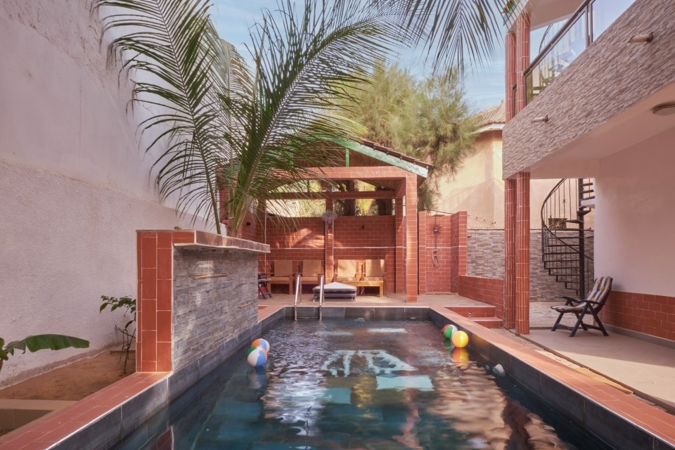Profitez d'un séjour paisible et raffiné dans ce logement élégant en face de l'hôtel Movenpick, anciennement Lamantin Beach, en bordure de route, au cœur de Saly, Sénégal. La villa possède 4 chambres dotées de leur propre dressing et de leur salle de bain sprivée. Notre piscine est aussi superbe, longue de 10m et spacieuse, avec un grand salon de jardin pour vos moments de détente, barbecue et autres, autour d'un jardin fleuri avec un possibilité de faire chauffer la piscine .