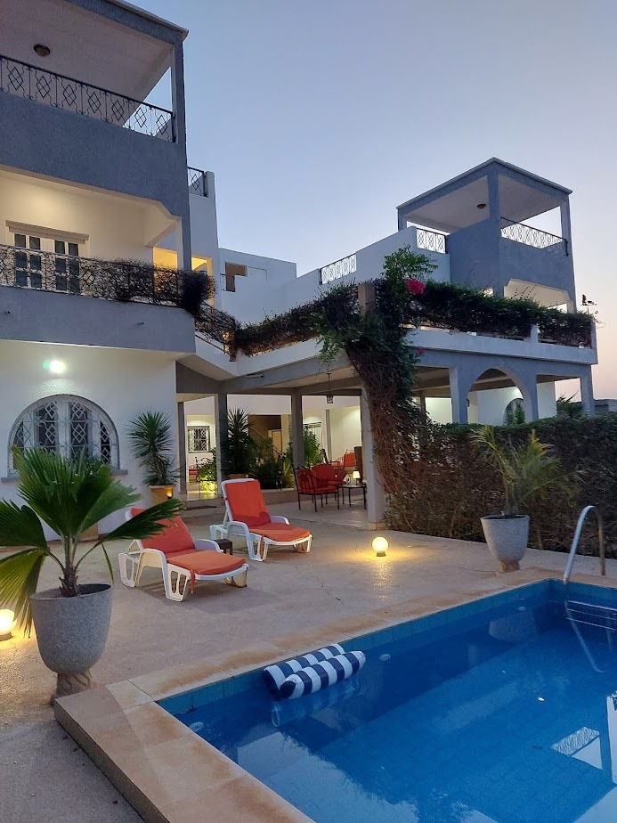 Détendez-vous dans cette villa unique et paisible. La maison est familiale , équipée et aménagée avec goût. Une piscine naturelle, un jardin arboré vous pouvez y faire un feu de camp au coucher du soleil. Spot de kit surf ! La lagune se trouve a 15 min à pied , pour les amateurs de surf et de fruits de mer. Adama le gardien, fatou la femme de ménage et Oumy la cuisinière seront là pour s’occuper de vous !