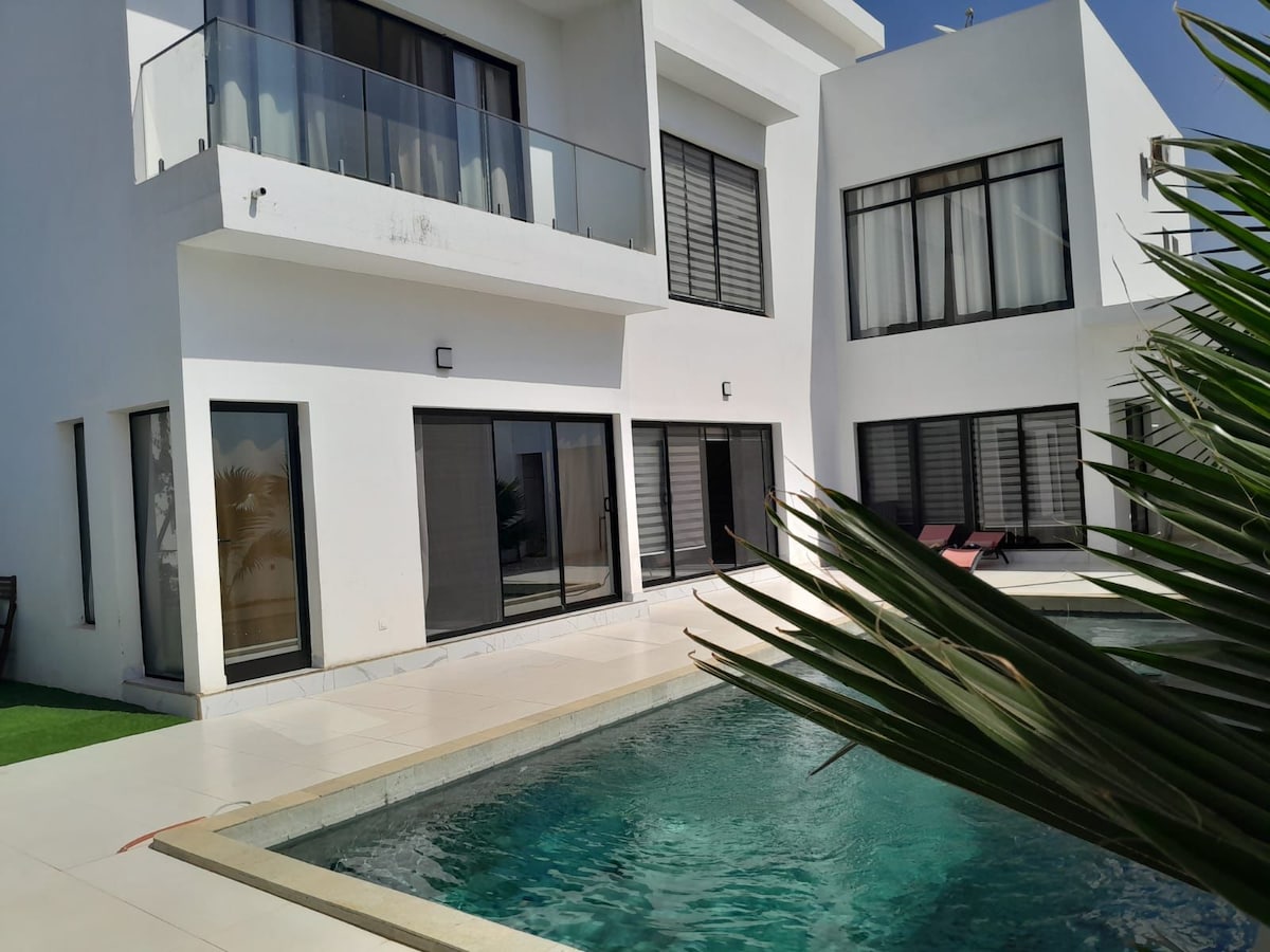 Villa Duplex de charme avec Piscine - 2 chambres, Salon, Cuisine Américaine entièrement équipée, Mezzanine, Wi-Fi Internet, Cuisine Externe, Terrasse Barbecue, Gardiennage 24h/24, 7j/7, à 300 m de la plage et à 5 min de Saly Centre Brand New Duplex Villa with Swimming Pool, 2 Bedrooms, Living Room with Internal Kitchen, Mezzanine, Wi-Fi, Exterior Kitchen with Barbecue Place, Security Guard 24/7, 5 minutes from Downtown Saly, 300m from the Beach
