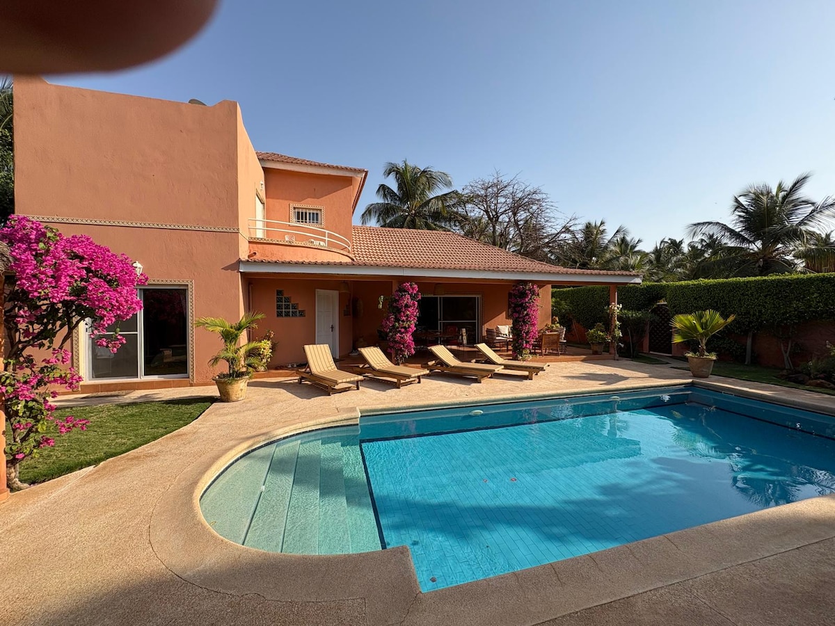 Spacious villa with a private pool ideally located in Saly, a 5-minute walk from the beach and shops. Situated in a guarded residence, this accommodation provides the perfect setting to relax and enjoy Senegal with friends or family. The property offers direct access to the residence's private beach, complete with a restaurant and three large swimming pools.