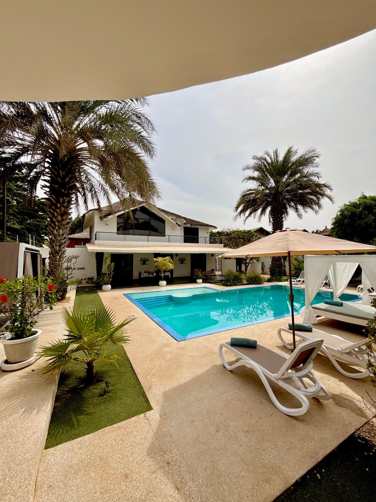 Villa located in a gated residence with 24/7 security. Immediate proximity to the beach (500m). Fully air-conditioned house with terrace and swimming pool. Housekeeping service 6 days a week (included in the rental), pool maintenance/gardener 6 days a week (included in the rental). Electricity is charged separately, and a contribution is requested for water (at cost price). Wi-Fi available (included) + Option to use our 4G Boxes with prepaid top-up. Tourist tax: 1,000 FCFA/person/day