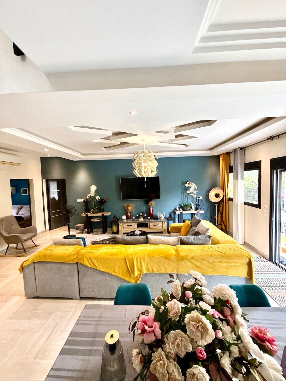 Offrez-vous une parenthèse chic et bohème dans cette superbe villa 4 chambres, alliant confort moderne et charme raffiné. Profitez d’une grande cour arborée, d’une piscine privée, d’un espace barbecue, de deux terrasses idéales pour vos soirées d’été. La cuisine spacieuse ravira les gourmets, et le salon invite à la détente. À 5 min de Saly, proche de restos, d’un salon de massage et du padel. Un havre de paix élégant, parfait pour se ressourcer.