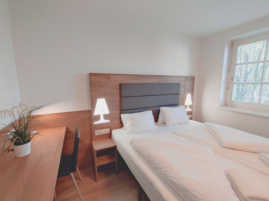 Das Doppelzimmer mit privater Dusche und WC befindet sich im kleinen familiengeführten Hotel und Apartment Das Au-Gut in Hallein. Es liegt straßenseitig, Lärm kann nicht ausgeschlossen werden. Es findet keine tägliche Reinigung statt. W-Lan und ein PKW-Parkplatz steht gratis zur Verfügung. Auf Wunsch kann Frühstück extra dazu gebucht werden. Die Bushaltestelle ist vor dem Haus. Mit der MobilityCard fährst du im SalzburgerLand kostenlos mit Bus & Bahn.