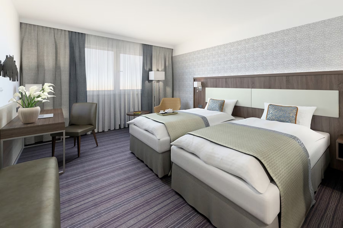 Located in central Salzburg, just five kilometers from the airport, the hotel offers convenient access to corporate hubs and the snow-capped Alps. This Standard Double Room offers a comfortable retreat for work or leisure. Its well-designed layout supports restful nights after travel or mountain adventures.