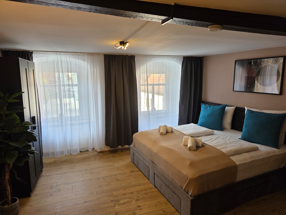 30 qm großes Studio mit eigener Terrasse, Grillmöglichkeit und Blick in den großen, schattigen Garten. Durch die Lage im Anbau des Haupthauses (Erdgeschoss) sehr ruhig. Babybett und Hochstuhl sind vorhanden. Die Ferienwohnung befindet sich in der Nähe des Stadtzentrums und des Bahnhofes (je 500 m). Stadtpark mit Spielplatz und die Schwimmhalle sind ca. 200 m entfernt. Ein kostenloser Parkplatz befindet sich in ca. 150 m Entfernung, Fahrräder können auf dem Hof sicher abgestellt werden.