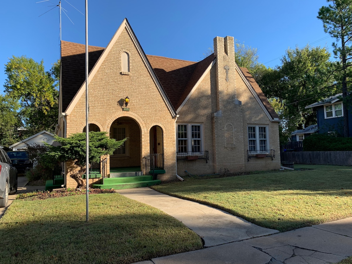 A very unique artist’s house built in 1936, only half a block from the University of Oklahoma. Featuring colorful and artistic decor throughout, a large fenced yard with a small decorative pond in the backyard, and ample parking in front. There are three steps up to the front door. We welcome dogs but are not able to accommodate cats.