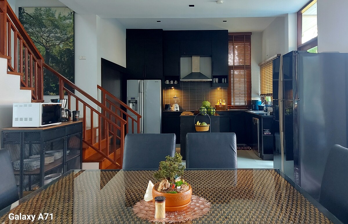 Our townhouse is situated in a quiet tropical village a few minute walk from the beach. Fully renovated in April 2023 it features modern design, thought-out layout, 2 new air-conditioners and hand-painted murals that will make your photos pop! In 60 sqm there is living room with smart TV, designated working desk, fully equipped kitchen with microwave, oven and coffee machine, dining zone, bedroom with new king mattress, bathroom with rain shower, balcony. In front of the house is a loop pool.