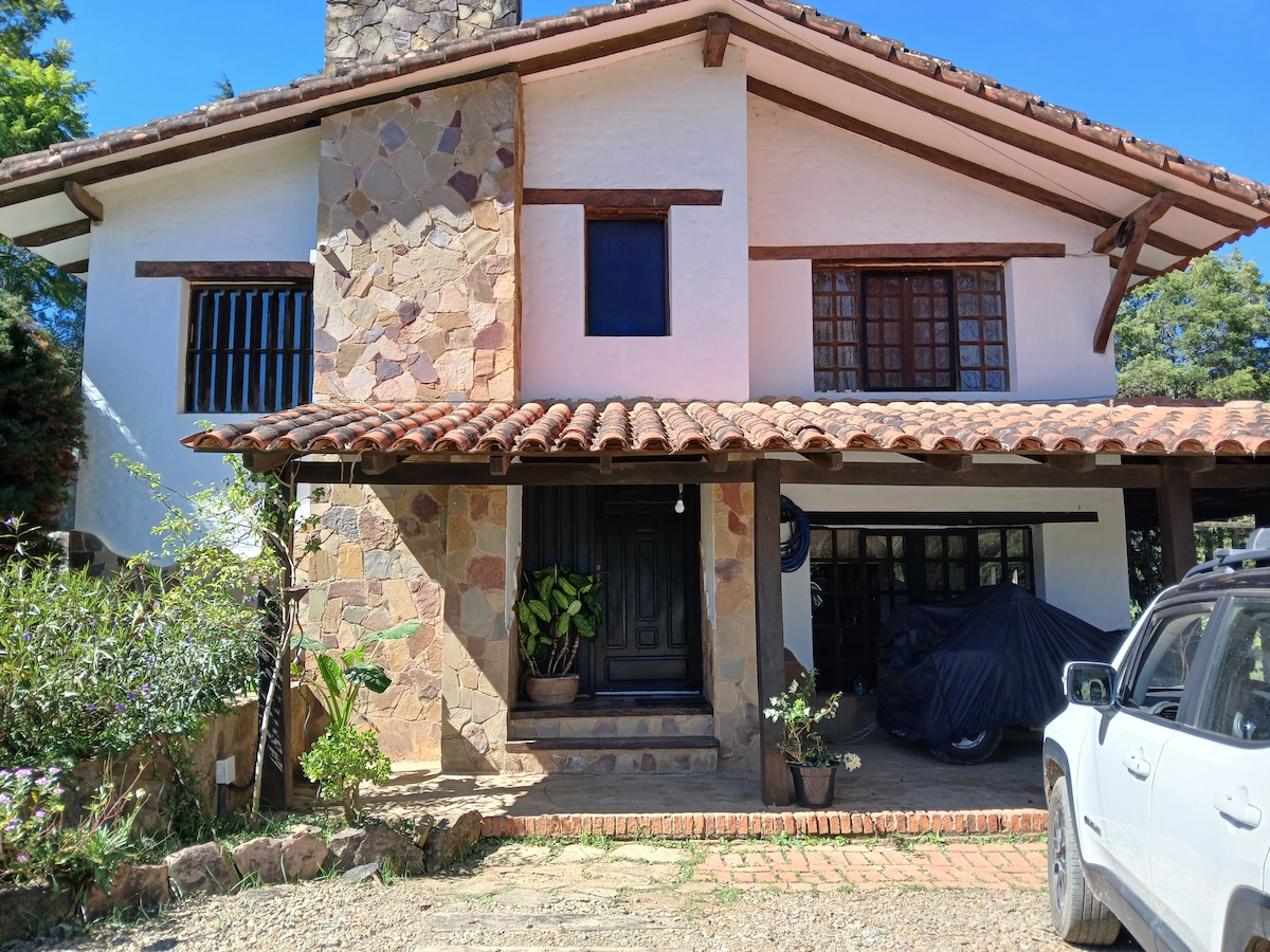 Hermosa y acogedora casa en Samaipata con una vista maravillosa! Ubicada en una zona muy segura con amplio parqueo propio. En una terreno de casi 4 hectareas rodeada de naturaleza propia del lugar y hermosos jardines que se pueden apreciar incluso desde el interior por sus amplios ventanales! La casa cuenta con todas las comodidades necesarias; churrasquera, horno de barro y estructura para cocinar el tradicional chancho al palo. Ideal para recargar energias positivas y respirar aire puro.