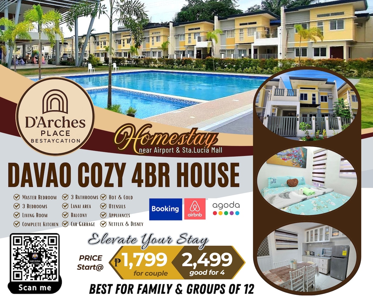 Welcome to the GRAND FAMILY TOWNHOUSE! Just 10 mins from Davao Int’l Airport, our fully air‑conditioned, baby‑proofed home in a secure community is perfect for families, couples, or groups. Enjoy high‑speed Wi‑Fi, FREE Netflix, and baby‑friendly amenities (baby amenities are only available upon request: 800/night, FREE for more than a week of stay). Loved by 100+ guests, your comfort is our priority. NOTE: Price covers 2 guests/night. See Booking Agreement for details.