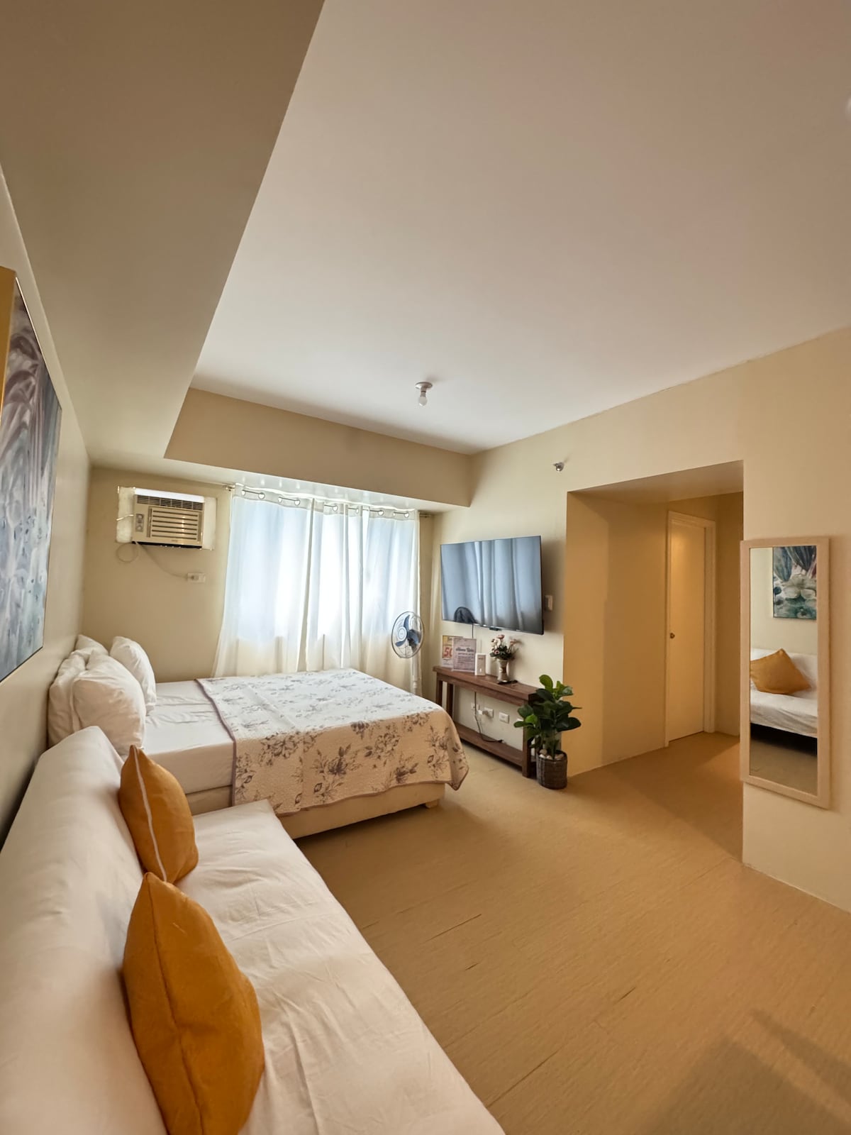 Condo: - 2 Br (Master and Bunk Bed) - 1 foam - 1 Bathroom - 1 Air Conditioner for whole unit - Balcony temporarily closed - Kitchen counter with Mini Fridge - Cooking appliances provided Accessibility: - Has access to pool. - With 24/7 security guards. - Mini mart and laundry hub within the area. - Near Tricycle terminal, Mercury Drug Store, and Puregold Supermarket. Location: 📍Sasa wharf 📍Airport 📍Azuela Cove (3 mins away) 📍SM Lanang (6 mins away) 📍Abreeza Ayala Mall (15 mins away)