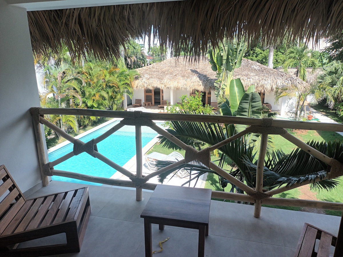 Bungalow de 45 m² avec 2 terrasses dans jardin tropical , belle piscine de nage, à 100 m de la plage, quartier calme et résidentiel, proche à pied du centre touristique de Las Terrenas. Propriété avec parking, Clôturée et sécurisée par système de vidéo-surveillance et alarme. Le Bungalow est neuf, spacieux avec prestations de qualité Envie d'un petit déjeuner copieux , pas de problème il suffit de demander!