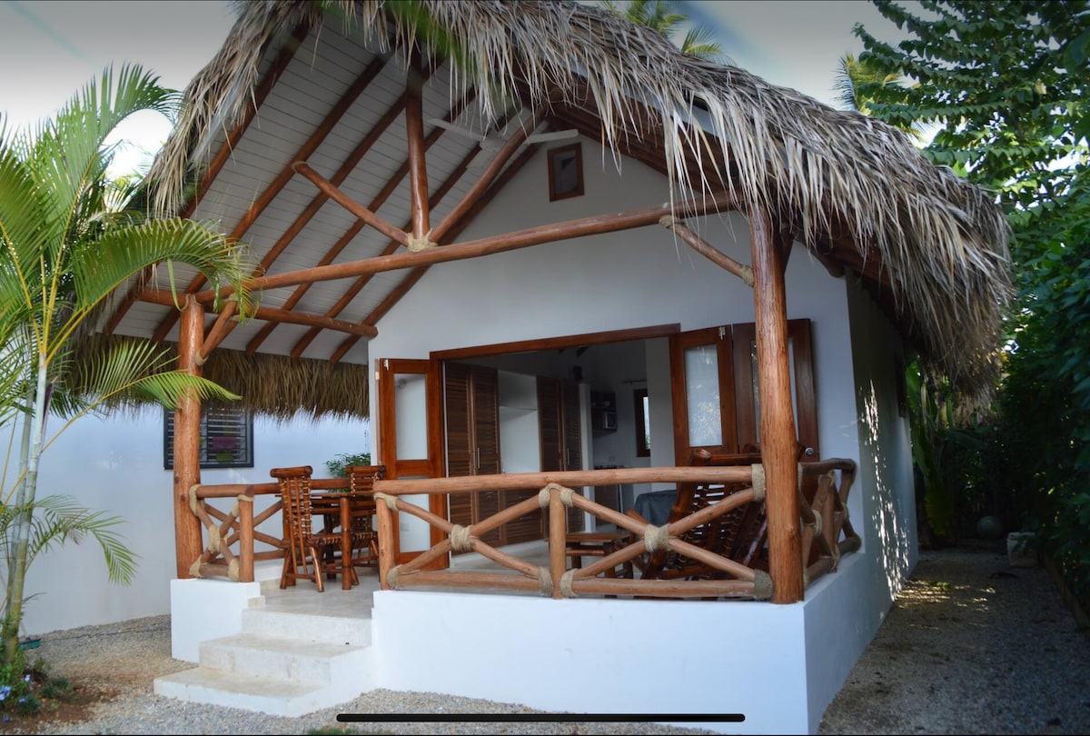 Escape to our tranquil bungalow, just 10 minutes from Las Terrenas and 5 minutes from Coson Beach. Tucked away in a serene locale, our retreat promises peace and quiet, with no loud music or parties—just the soothing sounds of nature. Relax by our inviting pool, surrounded by lush gardens. Enjoy TV and stay connected with WiFi. Free parking is available. The perfect blend of tranquility and convenience for your getaway. Please note that the toilet is located 25 steps away from the pool.