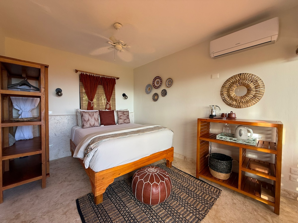 Welcome to VillaVida Boutique Hotel Your tropical escape steps from the turquoise waters of La Playita. Relax or seek adventure in the stunning Samana Peninsula. Our spacious queen rooms offer natural light, garden views, and delightful comfort. LOCATION • La Playita 3 min walk • Downtown 15 min walk AMENITIES • AC • Fully equipped kitchen • WiFi • Parking • Towels • Bathroom products • CCTV • Drinking water • Coffee EXTRA SERVICE • Laundry • Concierge/Tours • Breakfast Food Delivery