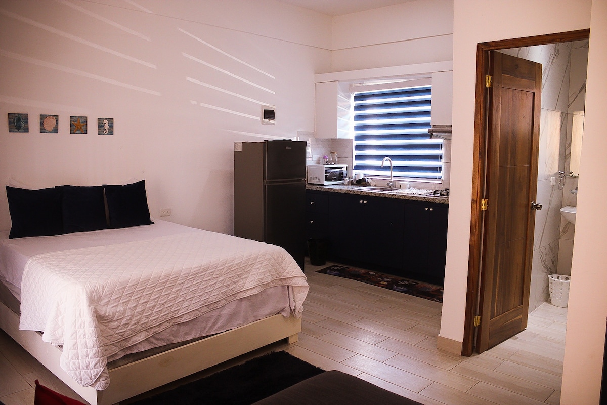 Welcome to Villas Hillside , Stunning views to Samana bay and downtown. This brand new unit comes with new air conditioning, hot water, washing machine comfortable beds, fully equipped kitchen, full bathroom on every unit, high speed internet (wi-fi), cable TV, full access to the roof top where you will have the most beautifull views of the whole peninsula. Quiet and peaceful location, close to all the restaurants and entertainment. Book with us! dans ce logement tranquille et élégant.