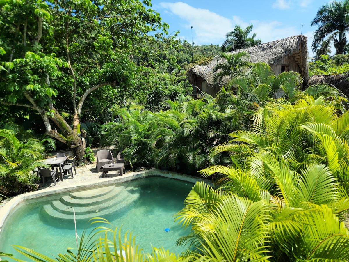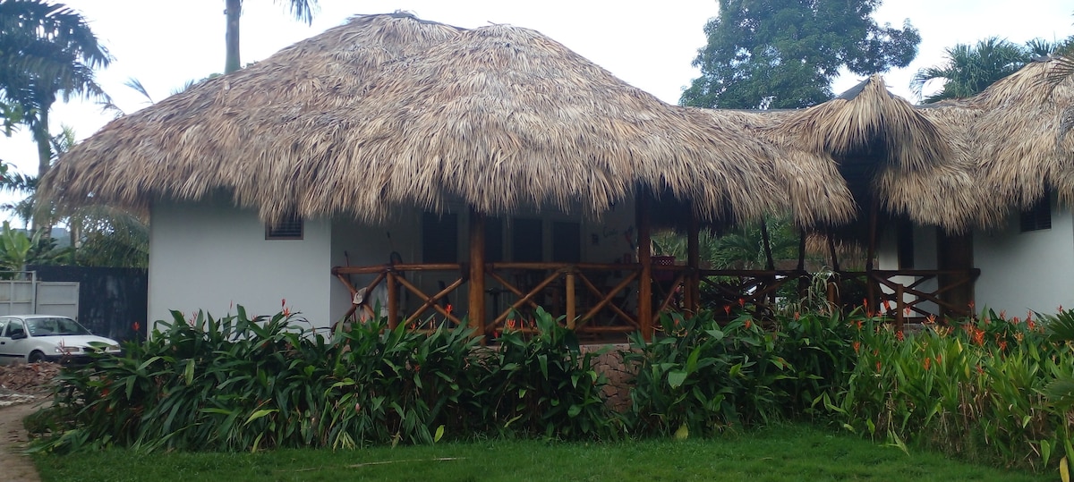Double rustic cabin located in a tropical Lodge. Traditional Dominican construction (wood and cane). 1 Queen bed. 1 full bathroom ensuite. Capacity: 2 people. Hot water. Linens and towels provided for free. Ceiling fan. Mosquito net. Daily cleaning. Lodge has a SWIMMING POOL, bar/coffee shop, garden with BBQ, free parking and free Wifi. Breakfast, lunch and dinner are provided for an extra charge. Local tours.