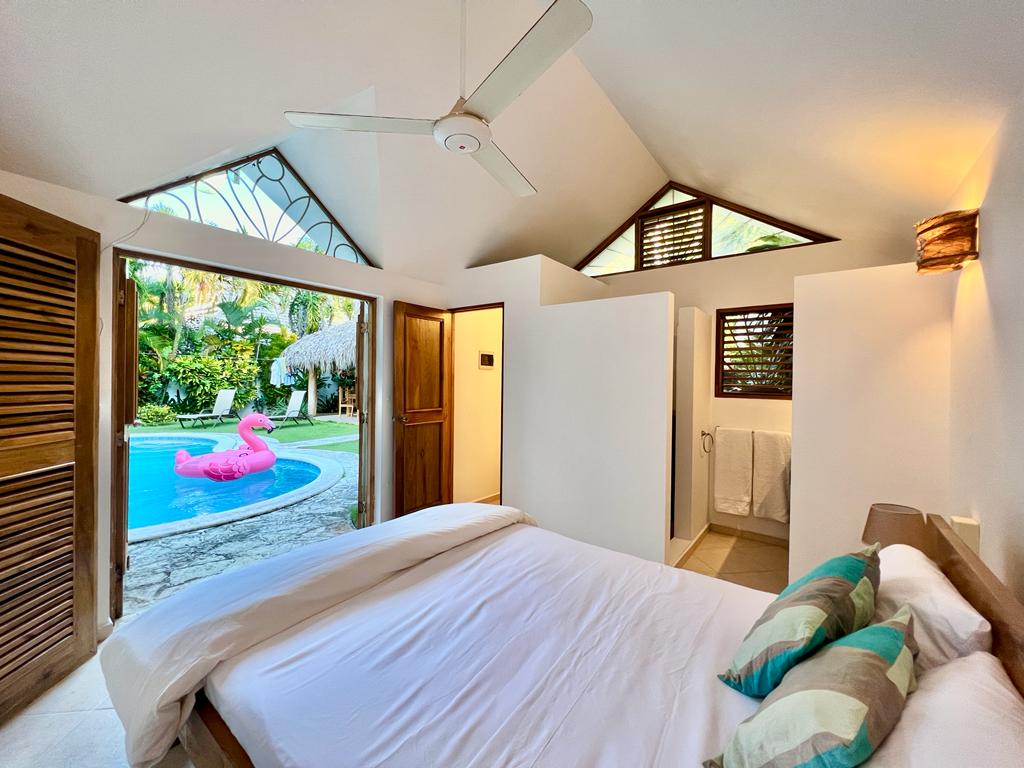 Welcome to your private, poolside 1-bedroom guest house in Playa Popy. Walk to the beach and most of Las Terrenas' best beachside restaurants in less than 5 minutes. Your guest house sleeps two in a comfortable queen size bed. Both fan and air conditioning are available for your comfort. Other amenities include: pool, laundry, hot water, wifi, coffee maker and a small refrigerator.