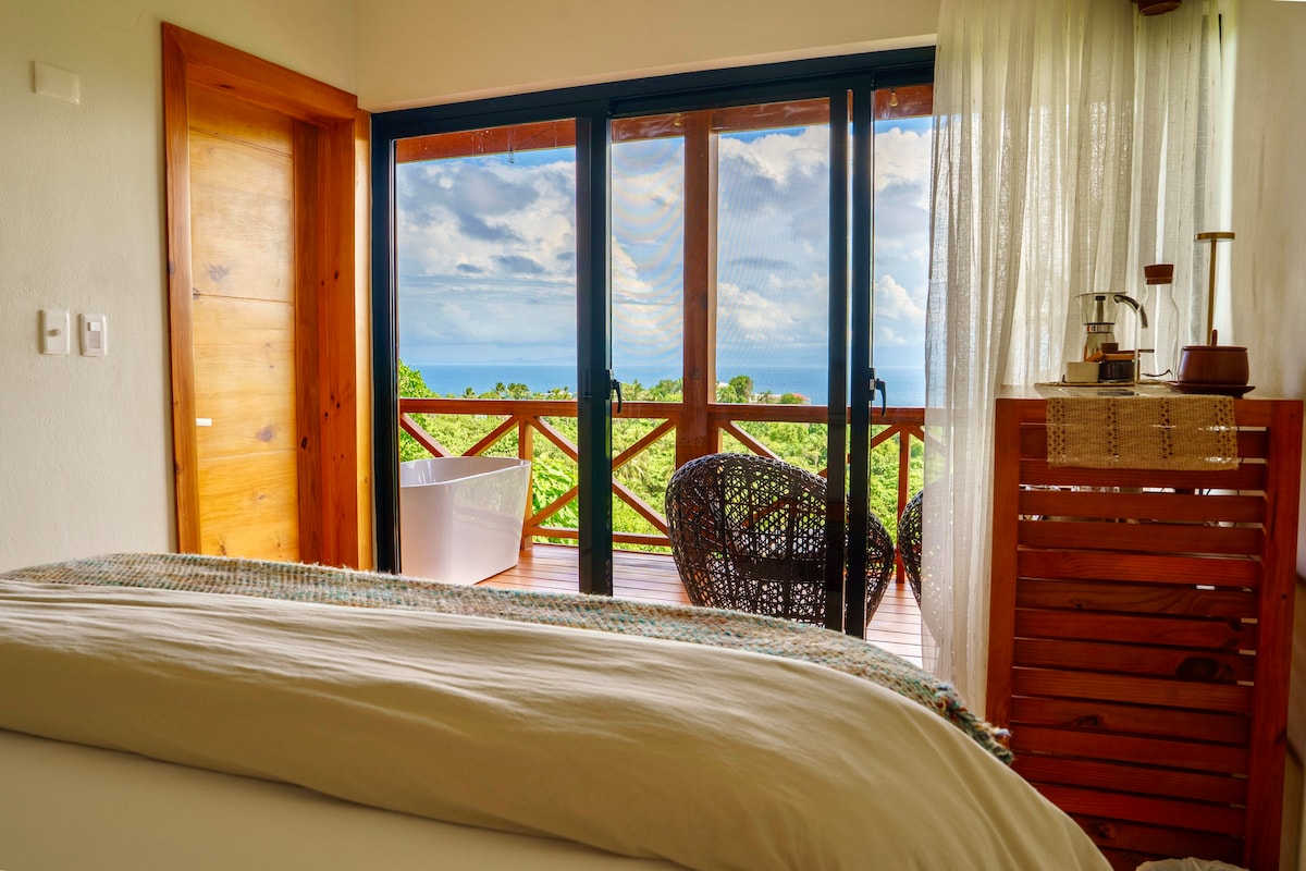 Encantadora habitación romántica, perfecta para parejas que buscan una experiencia única en una villa con magia propia. Disfruta de vistas espectaculares en el corazón de la Bahía del Rincón, reconocida entre las 25 más hermosas del mundo, frente al Parque Nacional Cabo Cabrón. Te esperan atardeceres inolvidables, tranquilidad y conexión total con la naturaleza. Con más de 15 años de experiencia, cuidamos cada detalle para que tu estancia sea perfecta.