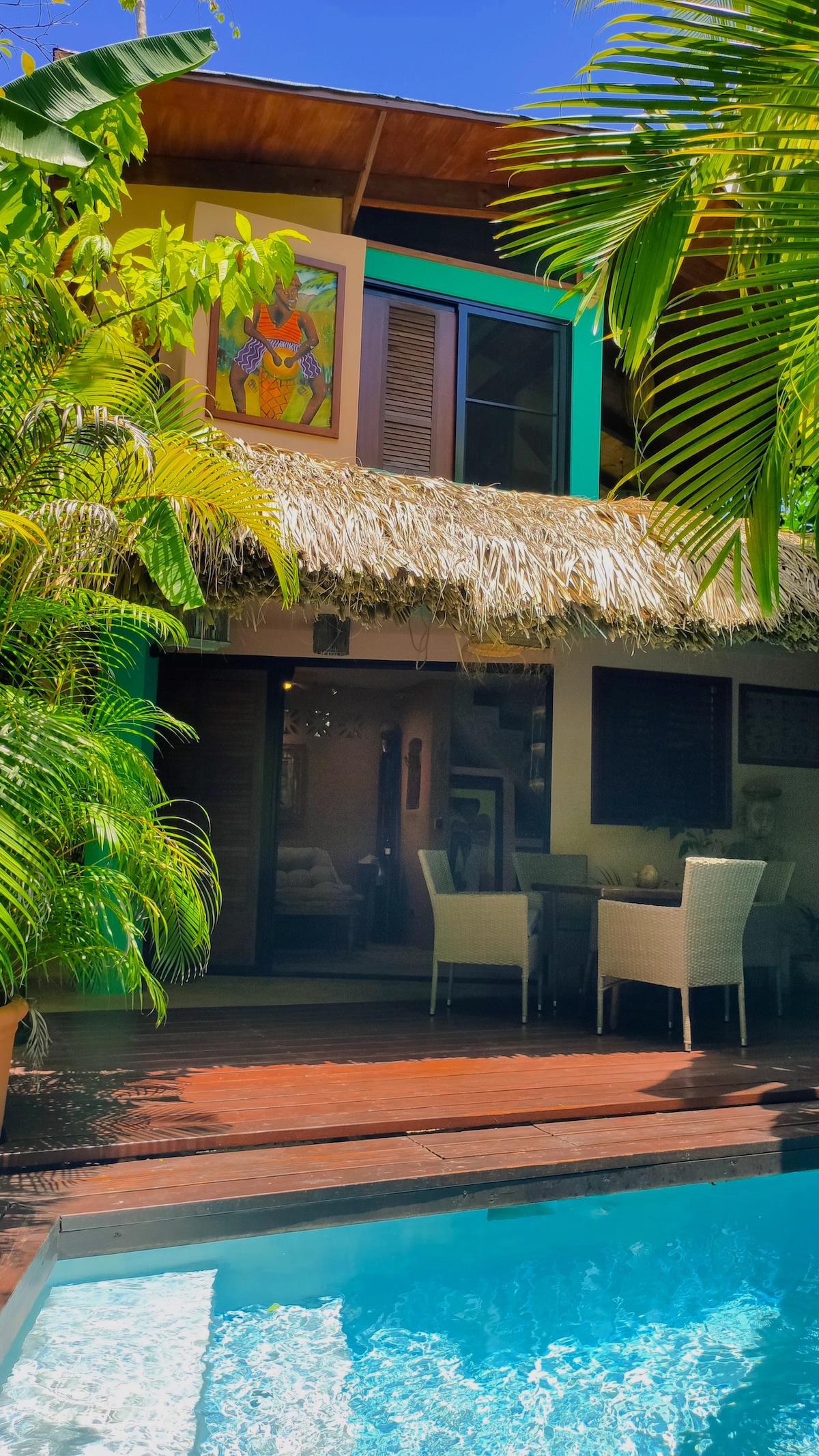 The Tiny House Coyaba, a refuge, is charmingly integrated into our tropical garden about 100 meters from the legendary Playa Bonita. Whether on the garden loungers by the pond, on the wooden terrace by the small pool or on the terrace on the first floor, from which you can catch a view of the sea, surrounded by the sound of the lush vegetation... Taino sculptures, warm colors, unusual special design everywhere and endlessly palm-lined beaches create the atmosphere where your soul finds home.