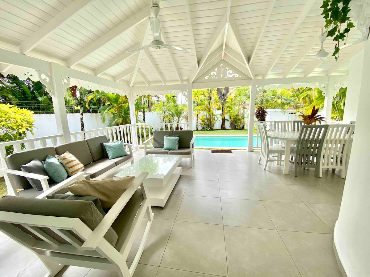Villa with a nice Caribbean charm, ideal to relax with family or friends. Tropical garden, the sweet chirping of birds and the sea form the decor... The beach access is immediate and on foot! Just 80 meters from the magnificent "Playa Bonita" in a private residential, quiet and with security 24h / 24h.