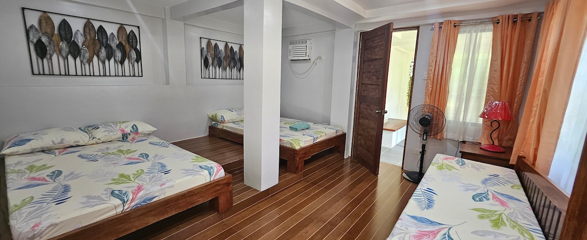 A cozy and idyllic newly-built private beach house perfect for a family or group vacation. The place is complete with its own kitchen, toilet and baths, and its own floating cottage. The property has a total of 5 queen beds, 2 sofa beds, a dining table and kitchen. The entire second floor is fully air conditioned. There’s a kayak available for use, and a private pier.