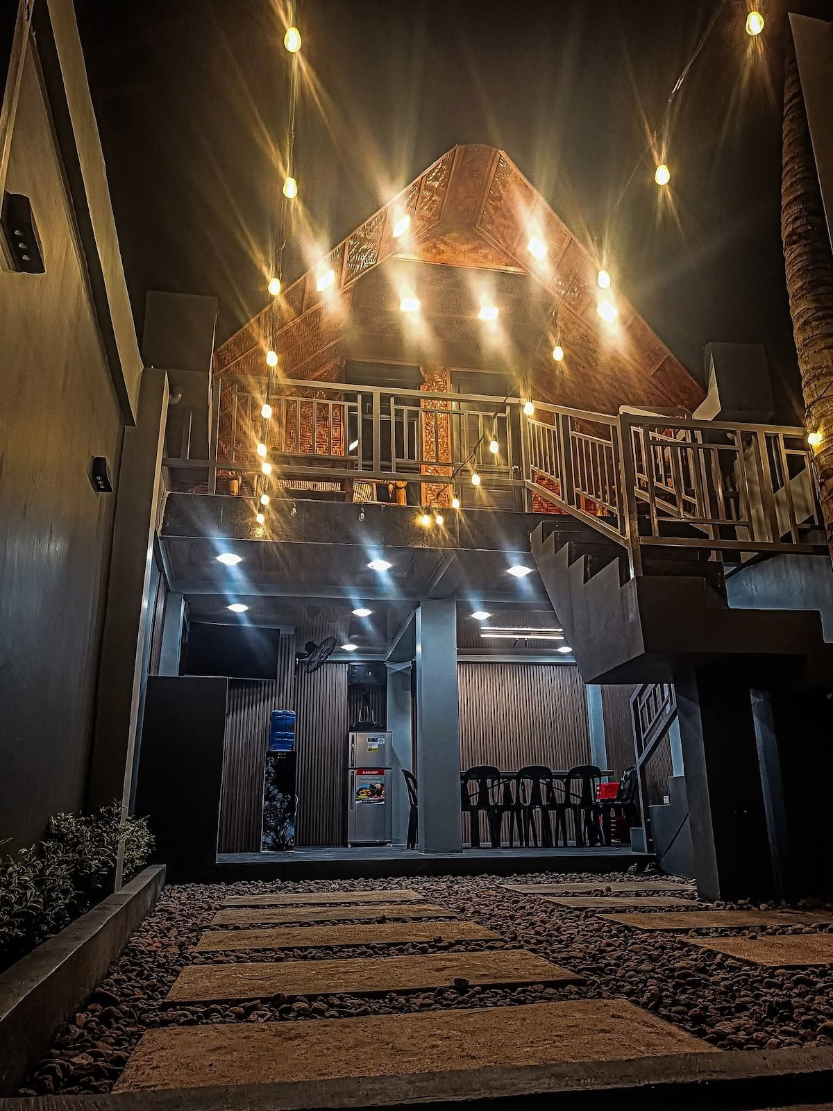 This stylish A-house is perfect for family staycation. Located inside a fully fenced private resort with all the amenities including a private pool. Your front view is a peaceful small lake and a relaxing outdoor grill area. Truly a home away from home. Maximum of 8 guests allowed but can add up to 4 single floor mattresses with extra person rate.